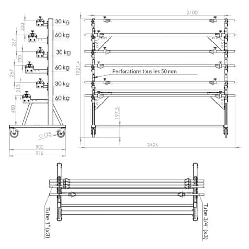 – Supports à rouleaux universels conçus pour le stockage ou le déroulage des rouleaux de tissus