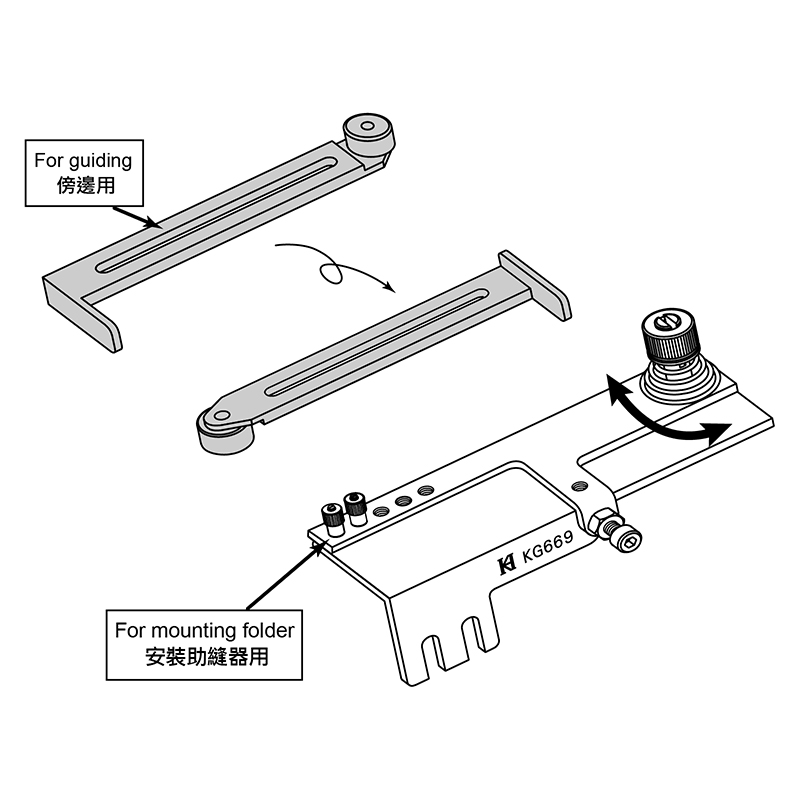 Le guide KG669 est un accessoire indispensable pour les professionnels de la couture industrielle souhaitant obtenir des finitions propres et régulières.