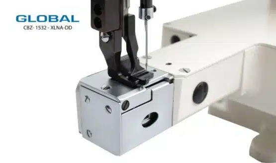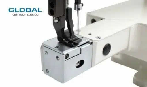 – Machine à coudre tout en un, à une aiguille, à entraînement supérieur et inférieur, à base cylindrique, zig-zag pour la reliure. La machine est équipée d’un système de lubrification entièrement automatique et le moteur, le boîtier de commande et le panneau de contrôle sont intégrés dans la machine. Le bobineur de canette est intégré à la tête de la machine. La machine est équipée d’un grand crochet rotatif à axe horizontal pour la couture de matériaux légers à moyens, tels que le cuir, la toile, etc.