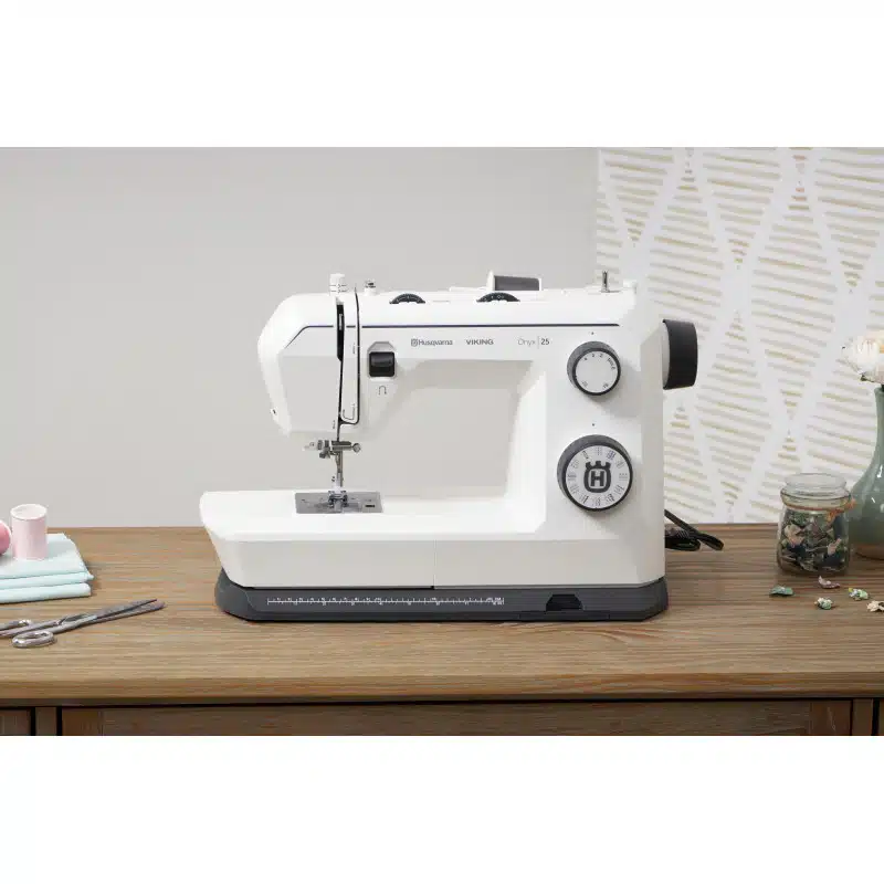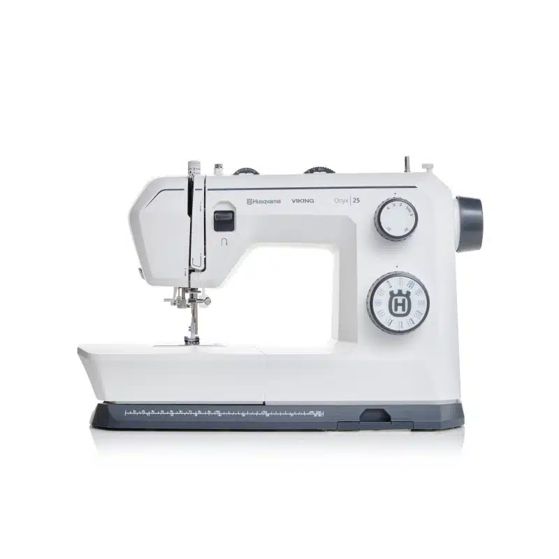 Onyx 25 est une machine à coudre mécanique de la gamme Husqvarna Viking. Elle offre l’essentiel en couture grâce à 32 points sélectionnables grâce à une molette, une boutonnière automatique et un enfile aiguille. Un guide pieds/points rétractable se situe sous la machine pour vous faciliter votre choix. Facile à utiliser, elle vous accompagnera longtemps pour la couture utilitaire mais aussi créative.