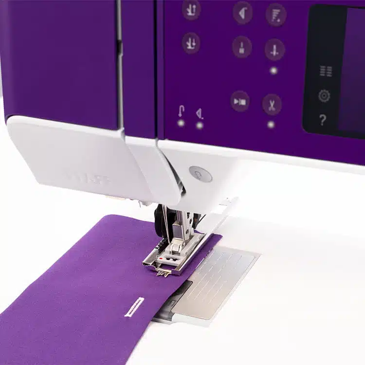 - L’espace de couture de près de 250 mm (10″) à droite de l’aiguille est idéal pour coudre de grandes quantités de tissu ou de molleton.