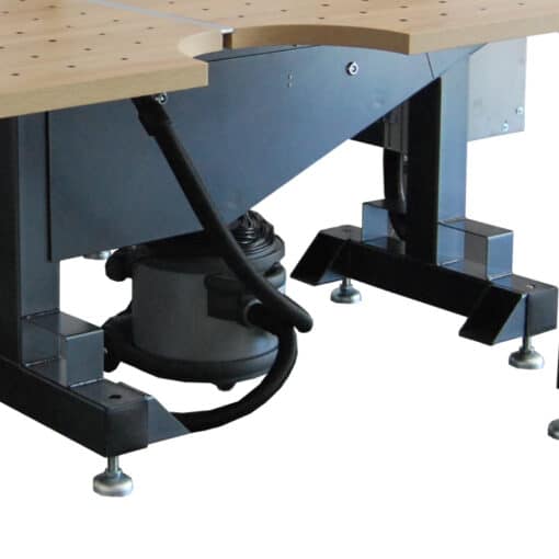 En option : système d’aspiration pour l’élimination de la poussière et des particules de matériau pendant la coupe.