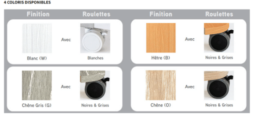 Disponible dans 4 coloris : Hêtre – Chêne gris – Chêne – Blanc