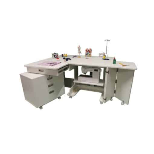 Élévateur à air de qualité, sans effort, à 3 étapes : position de couture rangée, à plat et libre.